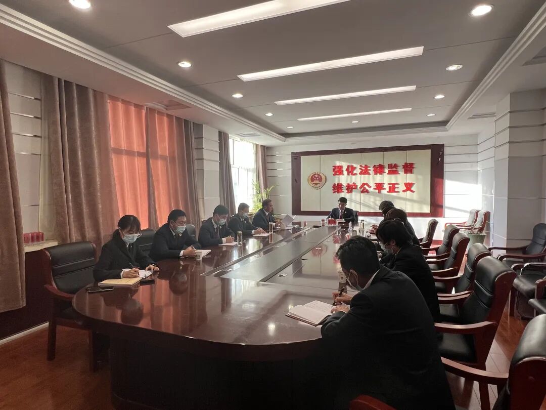 张北县人民检察院组织召开专题会议。王东检察长要求,一要抓贯彻。党组成员、部门负责人、党支部、每一名党员、干警要立即行动起来,把贯彻落实全国检察长会议精神作为重中之重抓紧抓实。二要明目标。在后奥运经济发展、京张体育文化旅游带建设、优化营商环境等重大战略中,发挥职能优势,展现检察担当。三要强措施。全面提升法律监督质量和效果。紧盯业务数据,做到“日预警、周督办、月晾晒”。继续强化工作措施,深耕主责主业,力争检察工作实现新突破。四要树品牌。对亮点工作做到常态抓、逐案盯,争取出成绩。推进公益诉讼中心投入使用,构建多元化监督格局,提升公益诉讼质效,做一件,成一件,亮一件。五要压责任。以钉钉子的精神,各项工作责任到人,稳步推进,逐步提升。院领导要切实履行好主体责任,带头做好表率,让人人有压力有责任,力促各项工作提能增效,不达目标决不松劲。